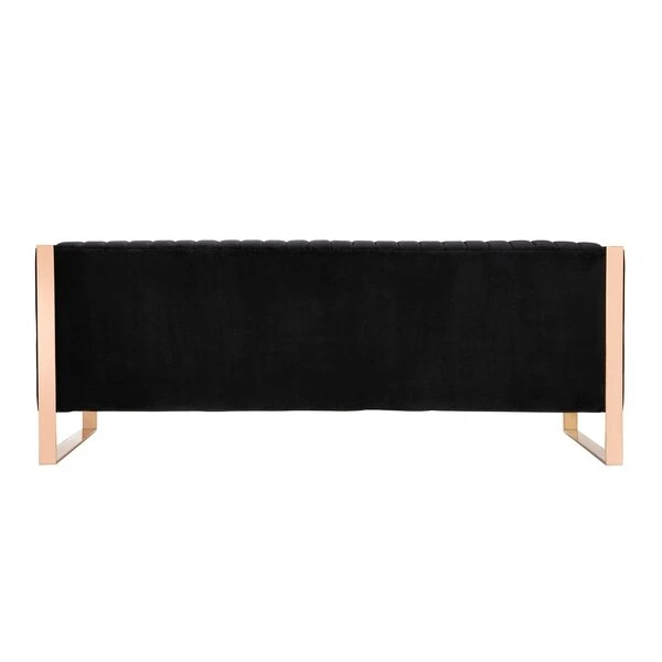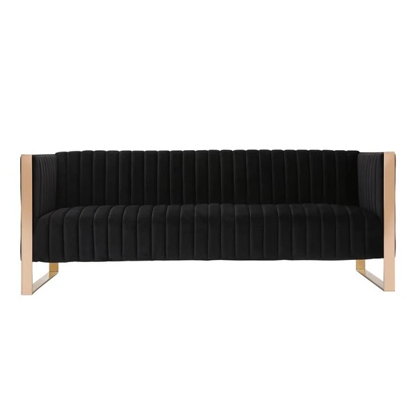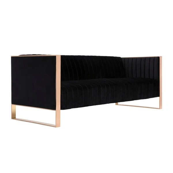 Sophistication — now with a little more ritz. This sofa achieves the enigmatic balance between tasteful refinement and utter decadence of true upscale design. Featuring sumptuous velvet, lush vertical channeling, and a rose gold finish, the luxurious materials are streamlined into clean, precise lines. The overall look is sophisticated, elegant, and powerful. For the complete look, combine with the matching Trillium Loveseat and Accent Chair.