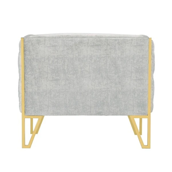 Dynamic. Contemporary. Upscale. Freshen up your living space with the Vector Accent Chair. Featuring a subtly geometric frame and open cutout feet, the design combines clean architectural lines with posh texture for an eye catching look. Rows of deep button tufts accentuate either side of the chair, emphasizing the plush cushioning beneath its tailored velvet upholstery. It’s luxe polished brass finish perfects the look. Coordinate with the matching Vector Sofa for a stylish update to your decor.