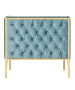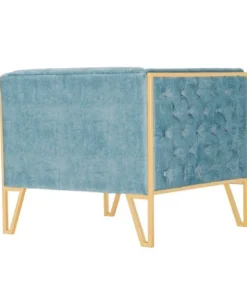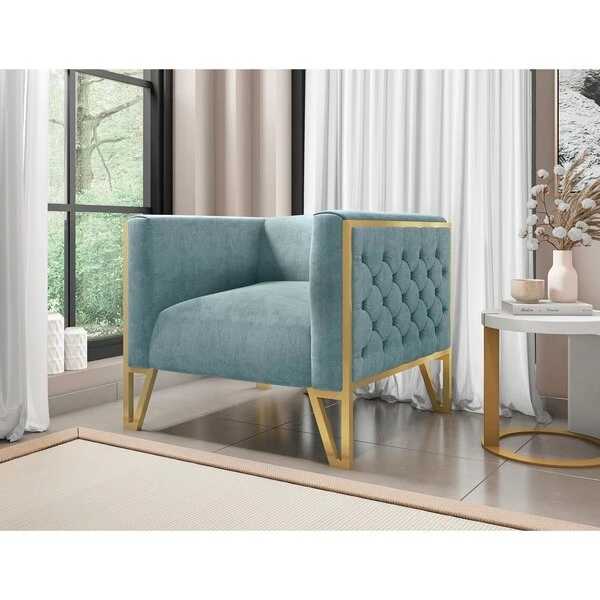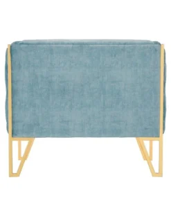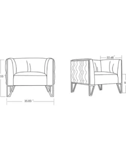 Dynamic. Contemporary. Upscale. Freshen up your living space with the Vector Accent Chair. Featuring a subtly geometric frame and open cutout feet, the design combines clean architectural lines with posh texture for an eye catching look. Rows of deep button tufts accentuate either side of the chair, emphasizing the plush cushioning beneath its tailored velvet upholstery. It’s luxe polished brass finish perfects the look. Coordinate with the matching Vector Sofa for a stylish update to your decor.