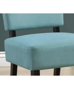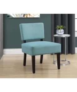 Combining contemporary lines and retro style, this versatile accent chair will bring sophistication to any room. It features sturdy, solid wood legs and exposed backrest supports in a black finish that provide an interesting visual contrast next to the soft, teal fabric. With a deep, extra-wide seat and gently curved backrest that offer maximum comfort, this upholstered armless chair makes a great guest chair or slipper chair in a living room or bedroom.. Upholstered armless accent chair in a teal fabric. Cushioned backrest and deep, wide seat with extra padding for comfort and support. Squared solid wood legs and backrest supports in a black finish provide stability. Assembly required: All parts are located underneath the seat cushion; illustrated instructions are provided for convenience (additional tools may be needed). Product dimensions: 22.75 inches L x 27.5 inches W x 31.5 inches H
