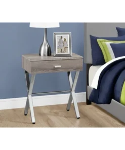 For a brilliant home upgrade, this dark taupe wood-look side table does the trick (and more!). Supported by an elegant chrome metal base, the end table is made for anything from snacks and drinks to your laptop, tablet and even decorative accents that complement the rest of your decor. Bringing a modern touch to your small home, condo or apartment, this table slides nicely next to the couch or bed. Study session? Favorite movie? Quiet reading time? This side table handles all of the above and some extra storage thanks to a convenient legal/letter-sized storage drawer.. This wood look side table is finished in dark taupe with a luxurious chrome metal X base frame. Elevate the modern tone of your living room, family room, office space, bedroom or den. Use it conveniently as an accent table or nightstand. Solid X design frame delivers the stability and elegance you need.