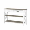 Grab your guests' attention with this stylish dark taupe wood-look accent console table. Featuring a unique curved base and a three tiered open concept design, this modern unit is perfect for dressing up any wall in your home or displaying your favourite decorative items.