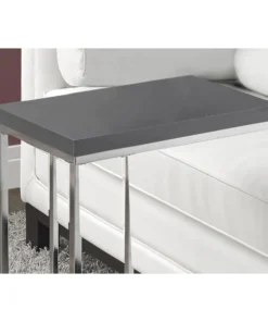 For a brilliant home upgrade, this glossy grey C shape side table does the trick. Supported by an elegant chrome metal base, the end table is made for anything from snacks and drinks to your laptop, tablet and even decorative accents that complement the rest of your decor. Bringing a modern touch to your small home, condo or apartment, this C table slides nicely under the couch or bed. Study session? Favorite movie? Quiet reading time? This side table handles all of the above.. Elevate the modern tone of your living room, office space, family room or den with this stylish glossy grey and chrome metal C end table. Use it conveniently as a snack table or sofa side table. This C shape side table slips easily under your sofa, chair or bed and sits slightly off the ground to prevent damage to your floor. Solid chrome metal base delivers optimal stability.