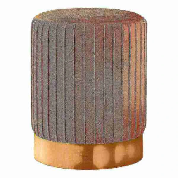 This exceptional ottoman commands attention with its unique cylindrical shape and distinctive details. Upholstered in a dark pink velvet fabric with a luxurious feel, the tall sides are pleated for visual and textural appeal while the padded seat is smooth to offer superior comfort. A sturdy metal base finished in lustrous gold completes the modern glam look. As versatile as it is chic, this round ottoman is great in a living room or bedroom as a foot stool to rest your feet and a makeshift table to place a book or mobile device, or as a pouf where and when you need an extra seat.