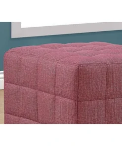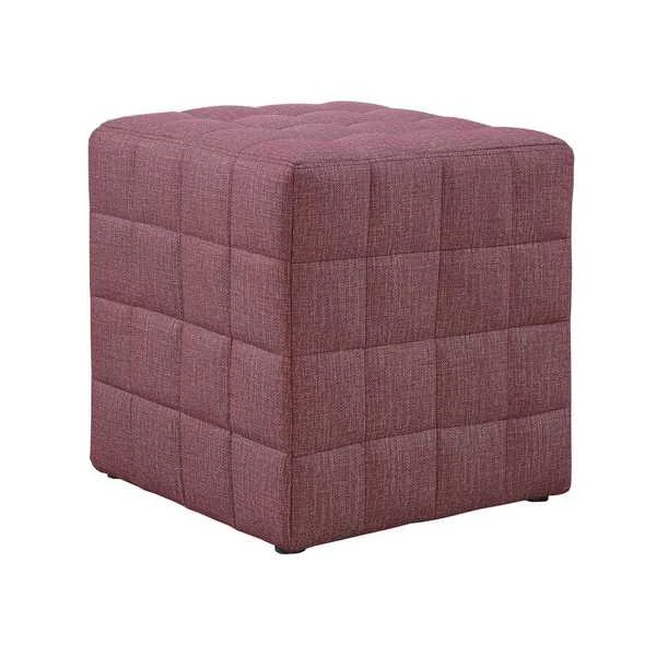 Enjoy style and comfort right out of the box with this cube-shaped ottoman. Padded and upholstered all around in a light red linen-look fabric, this pouf features biscuit tufting on the top and all 4 sides which creates a pattern of small squares mimicking its boxy silhouette. The geometric shape of this versatile pouf will add a fun, contemporary touch to a family room, living room, or bedroom. It's ideal as a footrest in front of a comfy chair or as a convenient surface to place a tablet or book. Plus, this portable foot stool is compact and lightweight enough to easily move from room to room if you need an extra seat when entertaining guests.