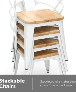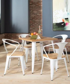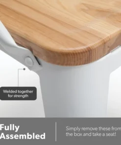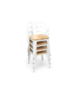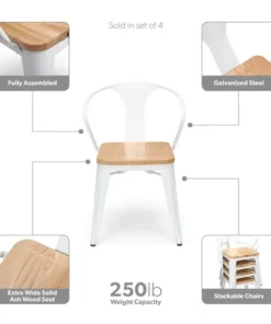 The 161 Collection blends mid century modern and industrial modern styles with current design trends to create timeless pieces that will seamlessly complement any decor. The OFM 161 Collection Industrial Modern 18" Mid Back Metal Dining Chairs with Arms and Solid Ash Wood Seats, 4 Pack, feature galvanized steel chair frames with solid ash wood seats, marrying the industrial with the modern. These stacking metal chairs come fully assembled and are welded together for added strength. The arm chairs feature an anti-UV powder to prevent heat retention, making these dining chairs a great solution for covered outdoor spaces like restaurants, cafes, bistros, pubs, or your own backyard. The mid back arm chairs feature extra wide seats, an x-brace beneath the seat that provides additional support and stability, measure 22.5" D x 20.0" W x 30.9" H, and hold at least 250 lb of weight. The metal and wood surfaces make cleaning easy and the plastic non-marring protective floor glides help prevent sliding and scratching. These chairs have been tested to light commercial-grade standards. With our 5 Year Limited Warranty, these dining chairs bring substance and style to any space.