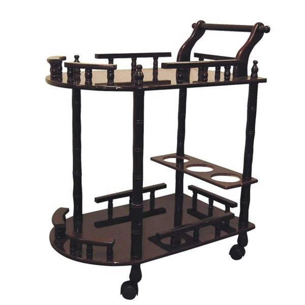 This kitchen serving cart and wine table has a rich cherry finished frame. It features a tray for servicing and a bottom level wine rack that can hold up to three bottles of wine cider water or any other bottled beverages. It is easy to pull or push around making it ideal for deck barbecues. This product is stylish and useful not only in the kitchen but as a serving cart or wine carrier in small dinner parties too. It is a perfect serving addition. This cart measures a height of 29" length of 23.5" and width of 15". Maximize style storage and function in your kitchen with this beautiful wine table and serving cart. It is classically styled and can be matched with most kitchen decors. It is a great companion for that extra need of counter space or serving area around the kitchen. It also makes your indoor and outdoor entertaining convenient and fun. This durable and attractive piece is the perfect addition to your indoors or the deck or poolside patio.