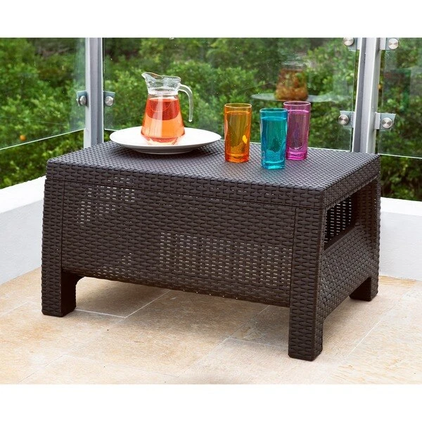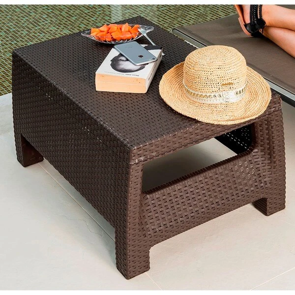 FERRARATM Coffee Table by MQ® is a fashionable table finished in a rich Espresso Polypropylene (PP) resin material with an attractive Rattan® look. It is lightweight yet rugged with a sleek design. This patio perfect table is UV-protected, weather resistant and will not fade or fray. It is designed to give your home a unique and modern touch in any area, and is ideal for outdoors. It is easily maintained with a quick soap & water wipe down to clean and freshen. This table can also be combined with other FERRARATM collection items to create a stylish ensemble
