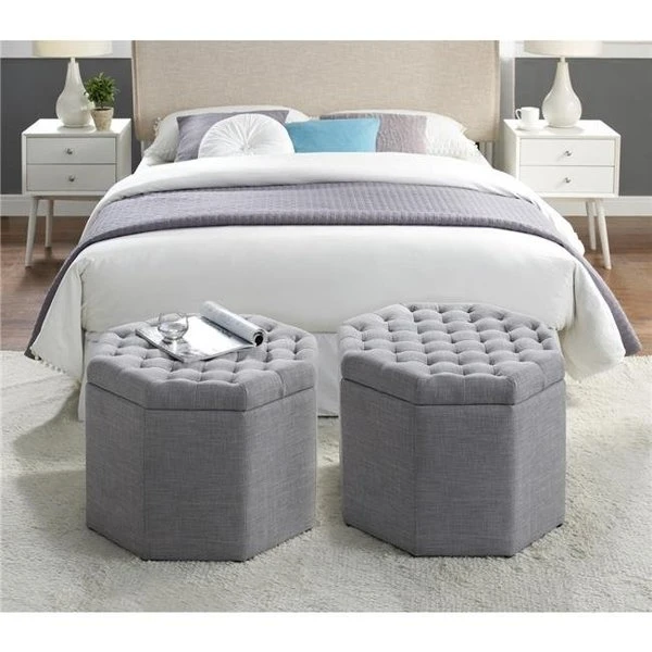Our octagon storage ottoman adds a contemporary yet playful touch to your living room bedroom or entryway. This stunning ottoman holds a hidden secret: a convenient storage compartment tucked away under the top. If you live in a small apartment or simply need extra space to keep your novelties the storage ottoman is designed especially for you. Featuring soft fabric with tufting on top and the comfort of a high density foam cushioned seat this sophisticated piece provides not only dual functionality but also a focal point of style and flare that seamlessly incorporates your main decor to create an inviting and comfortable atmosphere to come home to.About the Company: Inspired Home Co. provides modern casual on-trend occasional furniture ottomans benches fabric headboards and beds side tables dining chairs barstools accent chairs accent tables and sofas. Inspired Home is known for providing fashion forward designs quality home furnishings at affordable prices.