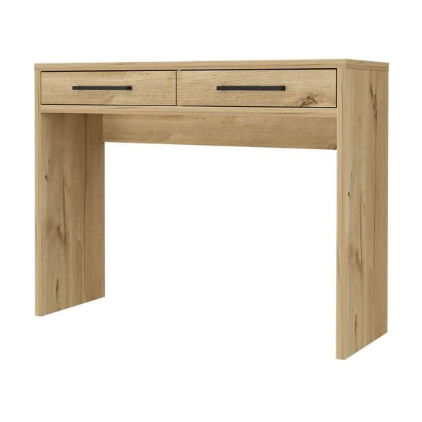 Transform a spare room into a home office or an elegate and existing setup with this sleek, symmetrical console table. Designed with two deep drawers for storage, the clean lines and elegant wood hues make this piece a staple of excellence. Easy to wipe clean from spills or accidents, this piece is perfect for a family-friendly piece that doesn't sacrifice a sleek look.