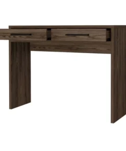 Transform a spare room into a home office or an elegate and existing setup with this sleek, symmetrical console table. Designed with two deep drawers for storage, the clean lines and elegant wood hues make this piece a staple of excellence. Easy to wipe clean from spills or accidents, this piece is perfect for a family-friendly product that doesn't sacrifice a sleek look.