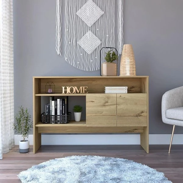This modern console table is sure to make your inner minimalist jump for joy. Combining soothing wood tones and clean, symmetrical lines, this desk is inconspicuous in all the right ways. Use it to display family photos and potted plants, or give it a practical purpose and keep your keys, wallet, phone, and sunglasses stored on its surface.