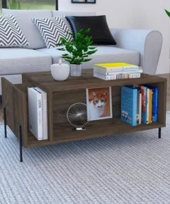 Sharpen your living room with an industrial-inspired focal point using this modern coffee table as a centerpiece. The frame is crafted from black oxide coated steel. A roomy surface up top is made from laminate composite wood with a natural-feeling grain texture for a splash of rustic charm. This piece also includes a space below for storage, for blankets or magazines.