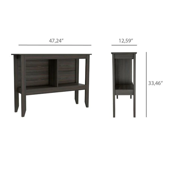 Give your entryway a facelift with this dreamy console table. The console table offers a cintemporary twist to a timeless classic, with two open shelves and a top surface perfect for showing off your décor. Supported by thick legs with sloped ends, this sturdy and functional table is calling your name (and we think you should answer it).