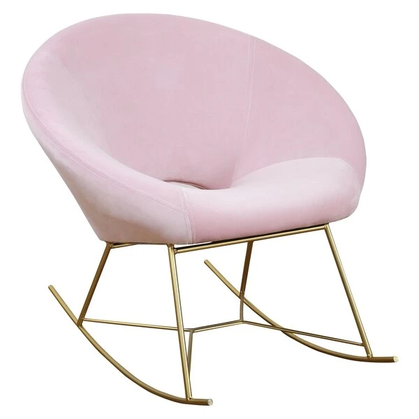 The Nolan Rocking Chair Has Clean Lines And Lavish Velvet Upholstery. Featuring A Barrel Shaped Seat With A Key Hole Back Supported By Gold Iron Rockers. Sit Back And Relax Into The Comfort Of This Fabulous Chair.