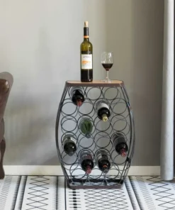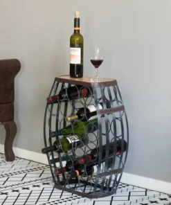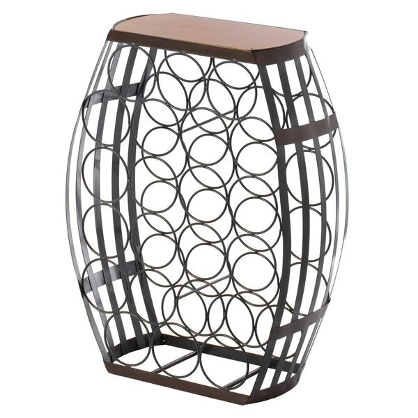 Complete the decor of your room with this vintage barrel wine holder. Composed out of durable wood and metal material, this wine holder offers durability and practical function for continual use. Vintage wood and metal designed base and barrel shape create a decorative appeal to your room decor. Freestanding design keeps the wine stand steady and your wine collection secure and use the table top to hold decorations. this barrel shaped wine holder invites vintage vibes to your home bar decoration.