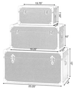 Add astonishing appeal and classical style to your home décor with this beautiful set of storage trunks. Superbly crafted in wood and faux leather, these trunks are truly wonderful work of art. Studded detail, metal handles and latches gives your decor collection a decorative spin. Place them anywhere to meet your storing needs in a classy way and give your interior décor an innovative and distinctive flair by adorning it with these fully practical decorative trunks. Declutter and Decorate!