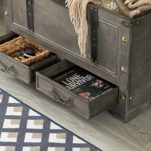 Make your living room feel warm and inviting with this wooden trunk. It is large enough to use as a coffee table too. Plenty of storage space to store blankets, throw pillows, books, and much more. They offer a wonderful storage solution with two big drawers on the bottom. In addition to being practical, they make beautiful decorative accents in any room and keep things neat and organized. Can hold up to 40 lbs.