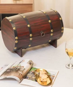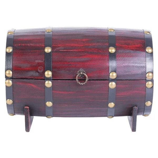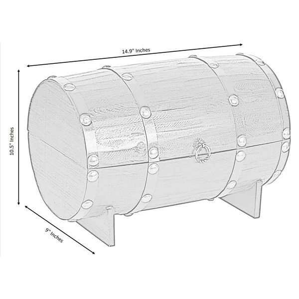 Complete the decor of your room with this vintage barrel shaped chest. Composed out of durable wood material, this treasure chest offers durability and practical function for continual use. Vintage wooden material, decorative latch, studded detail, and barrel shape creates a decorative appeal to your room decor. Use this storage trunk as a wine holder to store up to 4 wine bottles, or as a centerpiece display to keep bedroom or living room items organized.